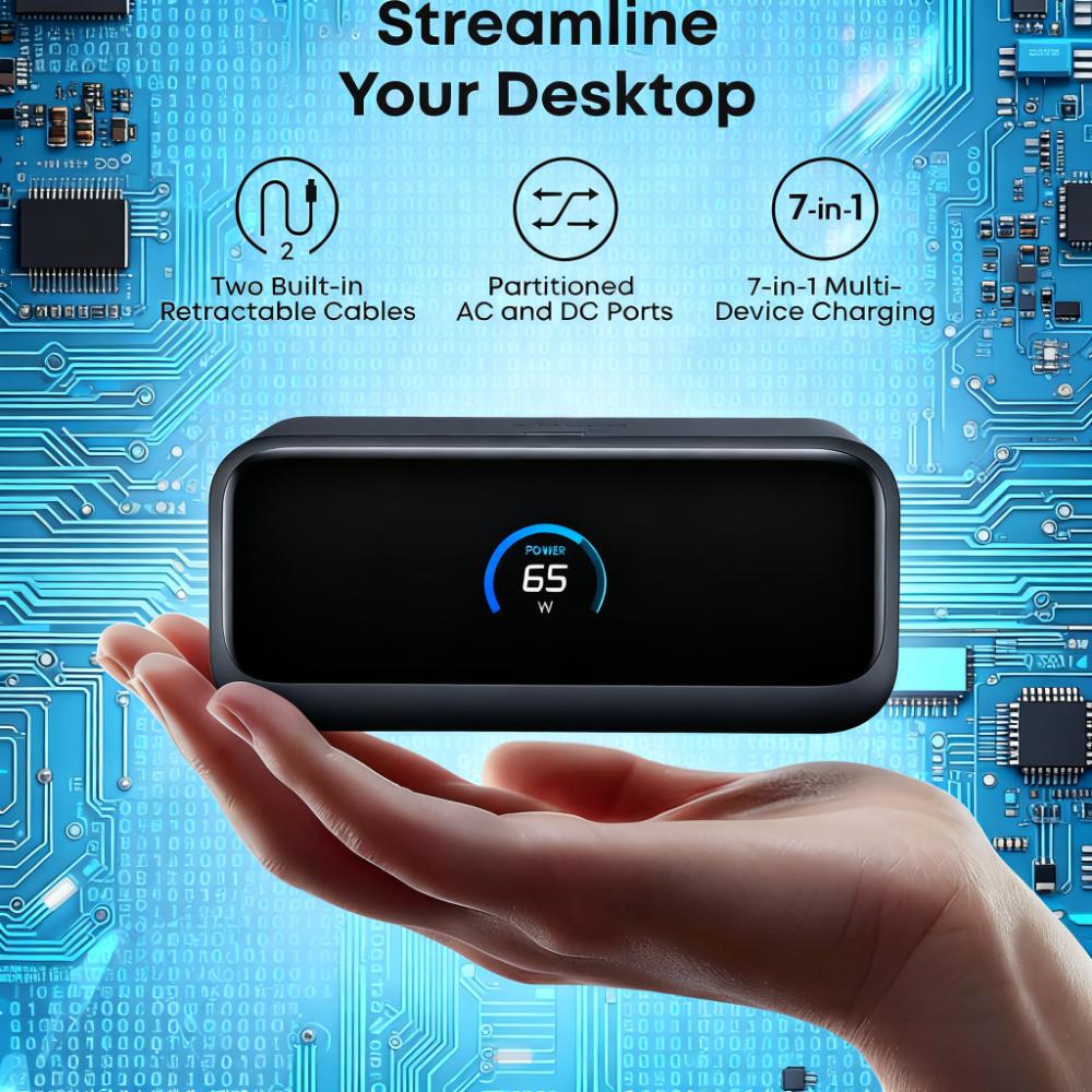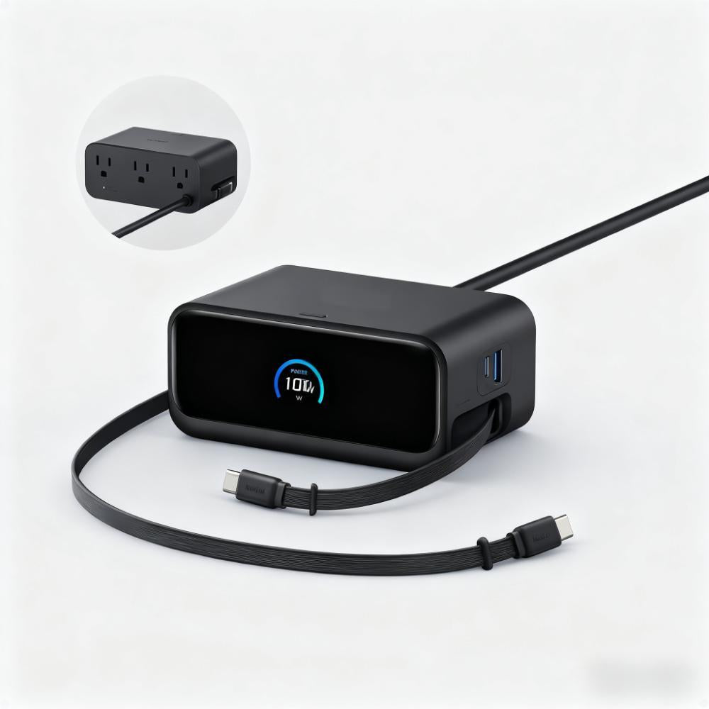 7-in-1 USB-C Power Strip – Nano Fast Charger with Retractable Cable for Home & Office
